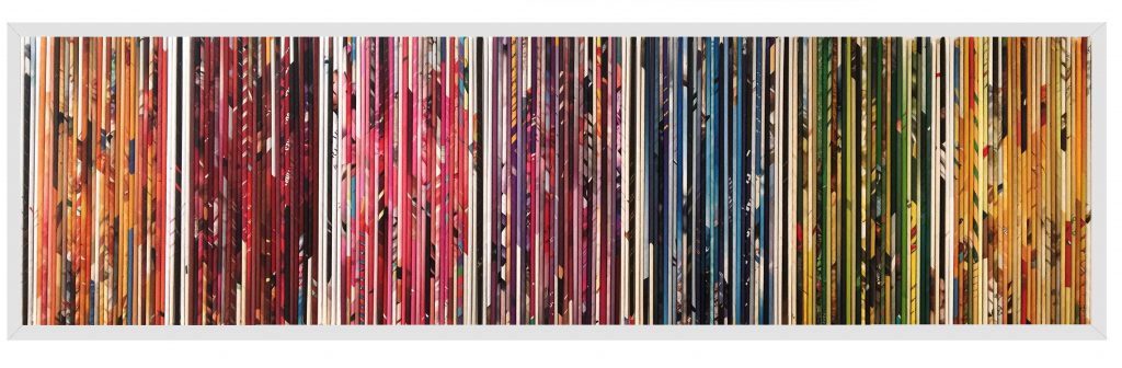 “Spectrum VI”, a group of 13 single-color canvases arranged in a horizontal row from 1969, was my starting point for this project, which includes collage on canvas, drawings and a site specificinstallation.