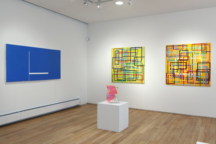 This exhibition gathers the work of eight artists, all at various stages in their careers, all of whom have retained a commitment to abstraction, particularly in terms of the intersection of color, form, and medium. Works in the show are products of their cultural environment. Despite their abstract nature, they make reference to actuality, to the context in which they are created, and use a variety of materials to underscore these connections. The intent of the works is often multiple, emphasizing the connections between what is real and the visual experience of the viewer. Working in mediums as diverse as plastic, vinyl, nylon, wood, cardboard, paper, foam core, Plexiglass, acrylic paint, photography and video, these artists each approach the solid forms of geometry, the patterning of abstraction and the meaning of line in various ways. The application of line, color, and form in a rich, sensual way marks these works as contemporary objects that draw on a long tradition of geometric and abstract work and often evoke the influence of the urban environment.