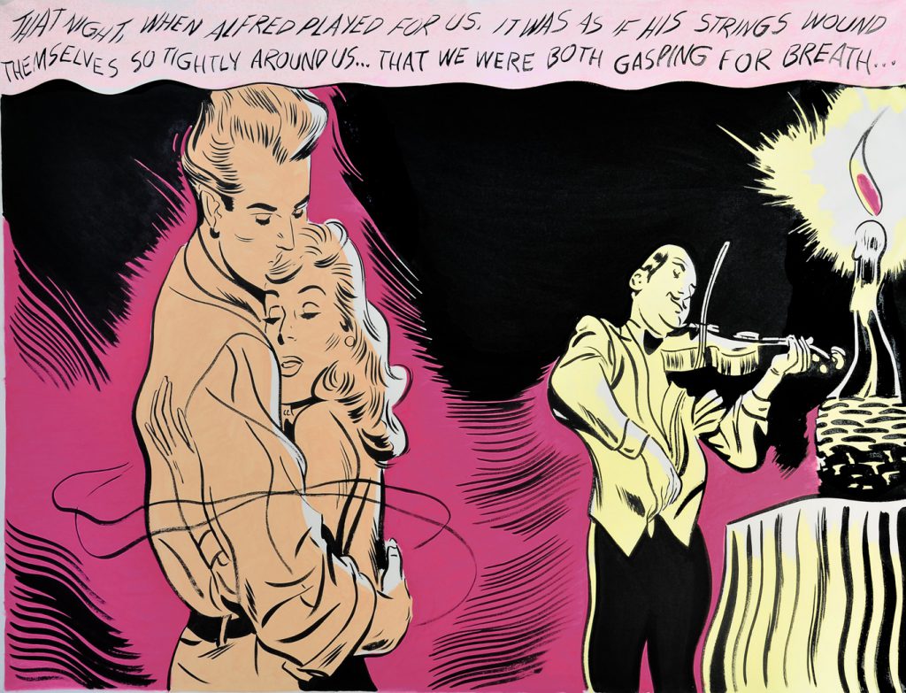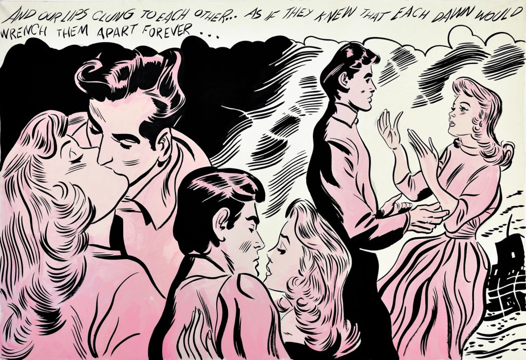 It was under the influence of that quote from Eric R. Kandel that this series of works began taking shape; it attempts to find a meaning in those romantic comics from the sixties, more precisely in the idea of love they harbor. The series started out trying to delve into the thoughts and dreams of their female leads and how those thoughts—written by the male authors of the scripts—were expressed.