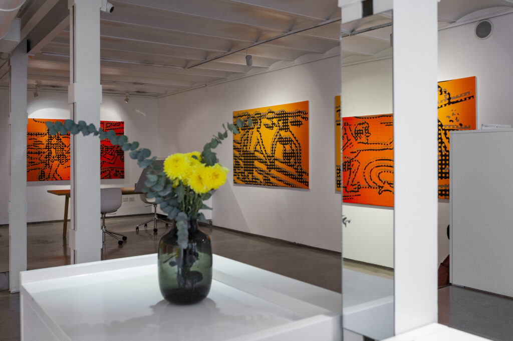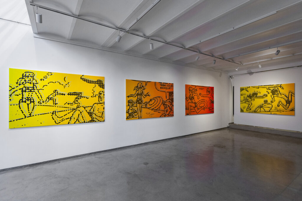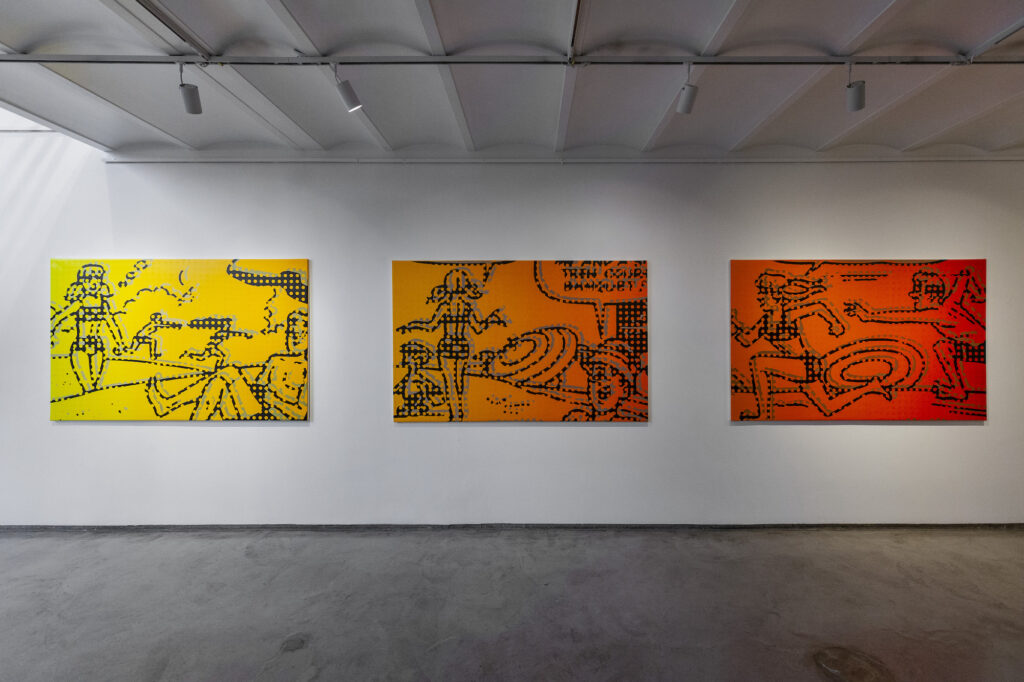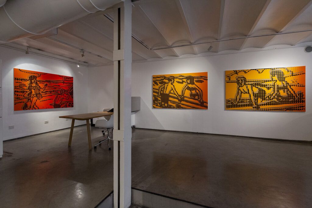 Dino Bruzzone, en forma elegante e intelectual, pinta con los mejores colores del pantone en cada serie y crea una forma de fenómeno óptico donde el punto (hoy el pixel) amplifica el efecto de lo que miramos.